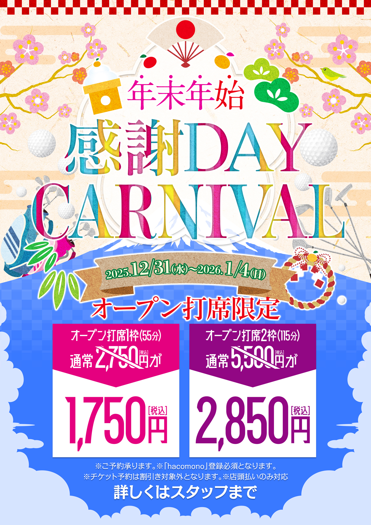 年末年始は🎡ゴルフカーニバル🎡開催‼ 12月31日~1月4日迄
