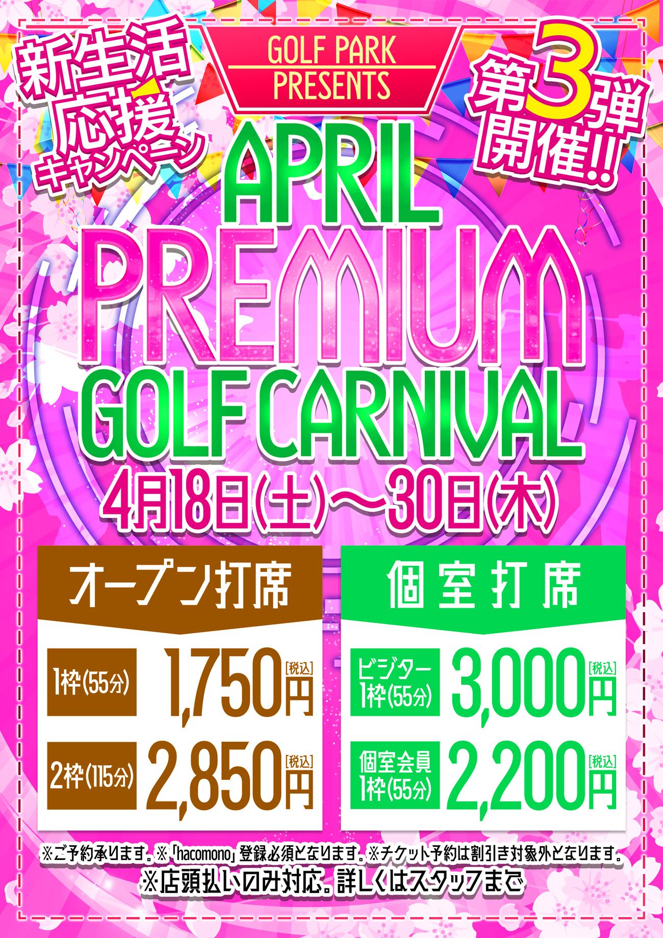 新生活応援キャンペーン第③弾‼ 4月18日~30日迄 【プレミアム☆ゴルフカーニバル】